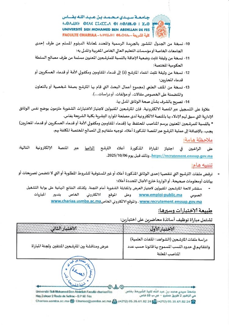 اعلان مبارة استاذين محاضرين