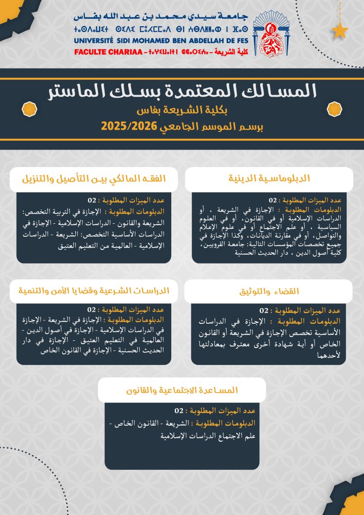 رابط التسجيل: https://master.chariaa.usmba.ac.ma/