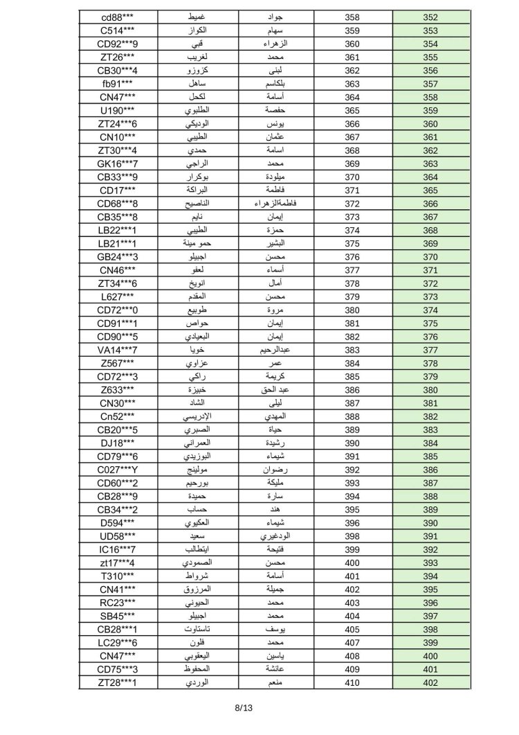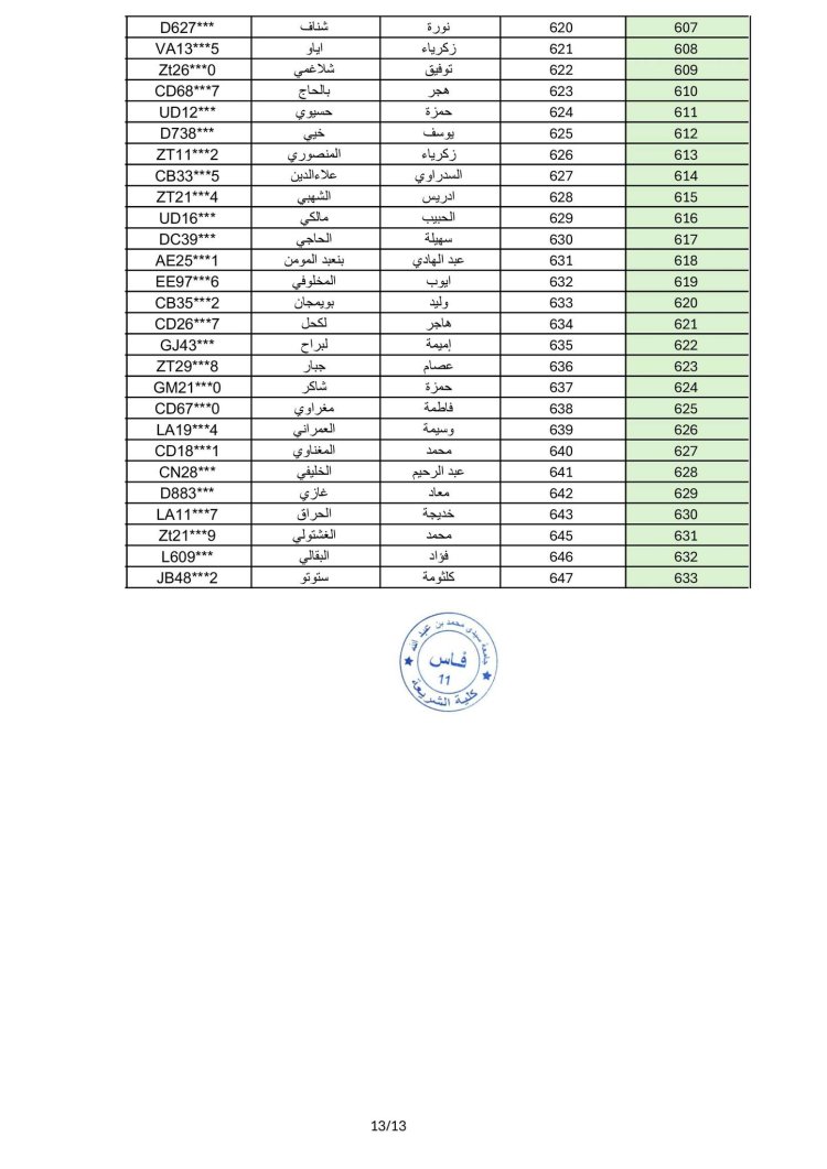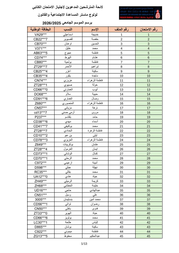 المترشحين المقبولين لاجتياز الامتحان الكتابي لولوج مسلك ماستر " المساعدة الاجتماعية و"القانون"