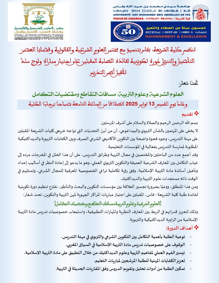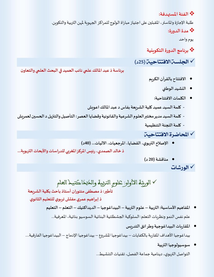 دورة تكوينية لفائدة الطلبة المقبلين على اجتياز مباراة ولوج سلك تأهيل أطر التدريس