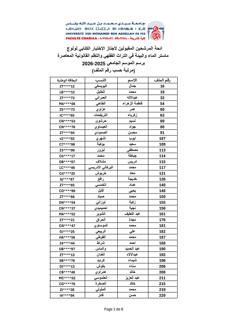 الاختبار الكتابي لولوج مسلك ماستر الماء والبيئة في التراث الفقهي والنظم القانونية المعاصرة"
