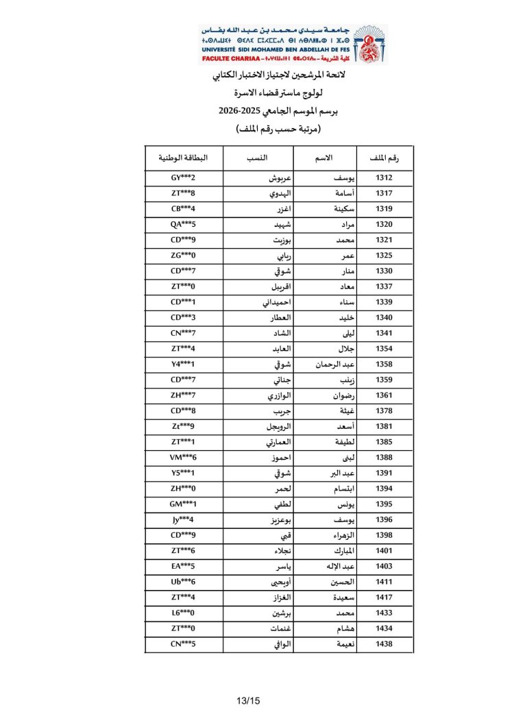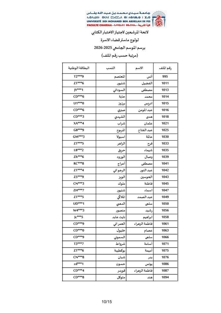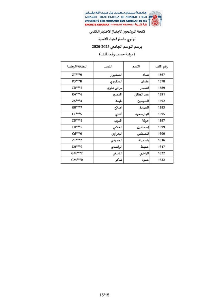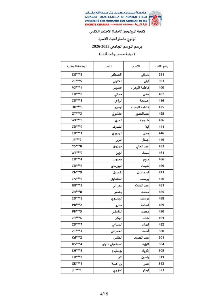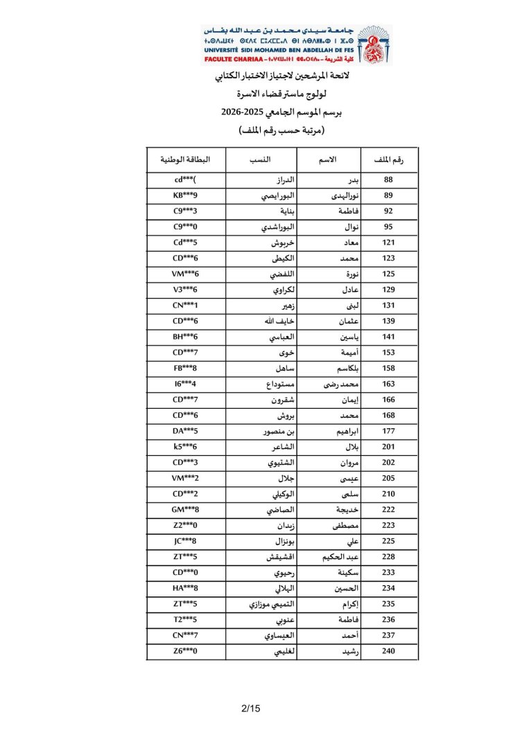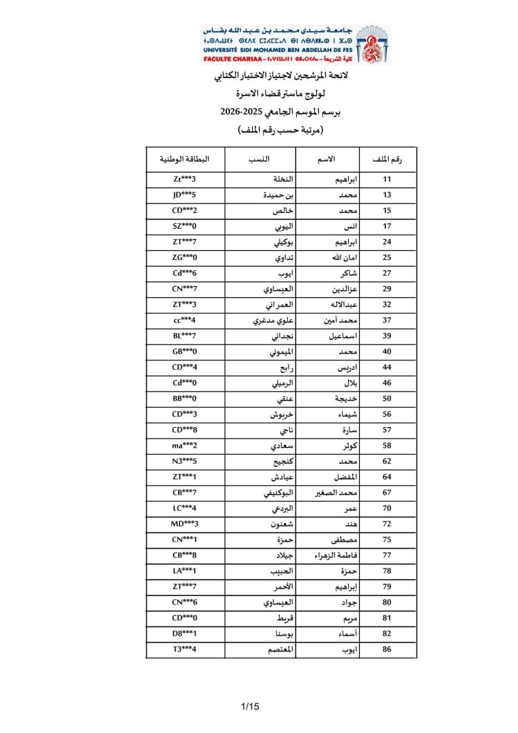 الاختبار الكتابي لولوج مسلك ماستر "قضاء الأسرة"