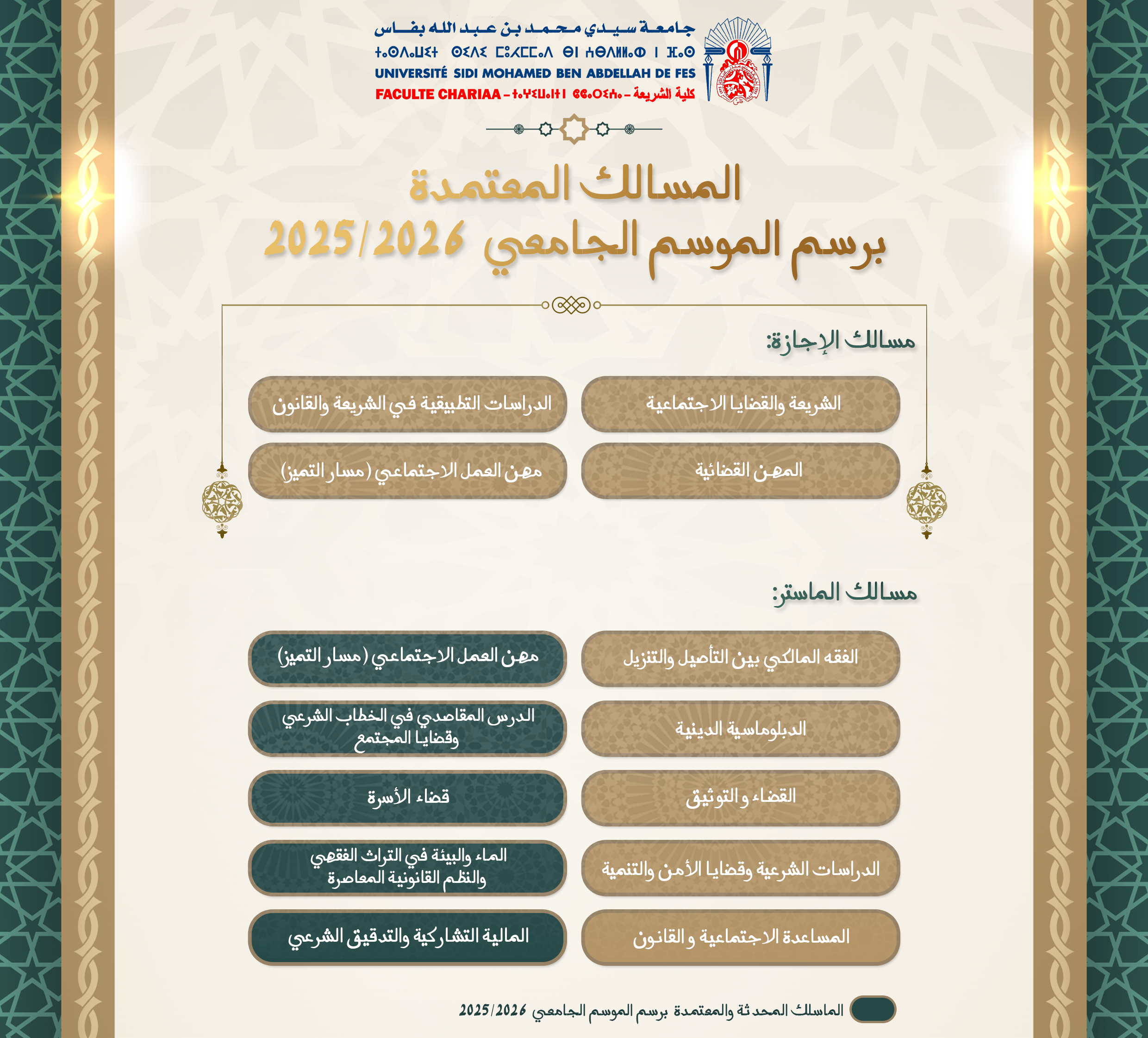 إن الرهان الحقيقي لكلية الشريعة حاليا هو البحث في السبل و الآليات الكفيلة بضمان إسهامها في مواكبة المسيرة التنموية المباركة التي تعرفها بلادنا و التي نطمح من خلالها لتحقيق إقلاع اقتصادي حقيقي يؤهل امتنا لتحتل المكانة التي تليق بها بين الأمم تحت القيادة الرشيدة لمولانا أمير المؤمنين أعزه الله و نصره. و مواكبة الجامعة المغربية لهذا المشروع ضرورية و حاسمة في نفس الوقت لأن العنصر البشري لن يستطيع القيام بدوره على أحسن وجه كرافعة للتنمية إلا إذا استطاعت الجامعة أن تؤهله لهذا الدور تأهيلا صحيحا من الناحية التربوية و الأخلاقية، متينا من الناحية العلمية و المهنية.